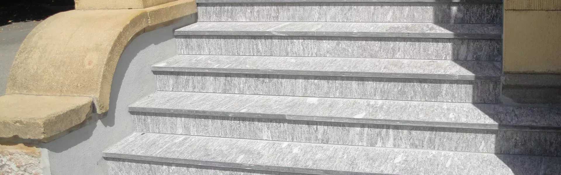 - Kunsteintreppen in Einzelteilen wie Blocktritte, Winkeltritte, Holmentreppen